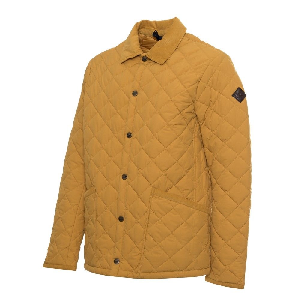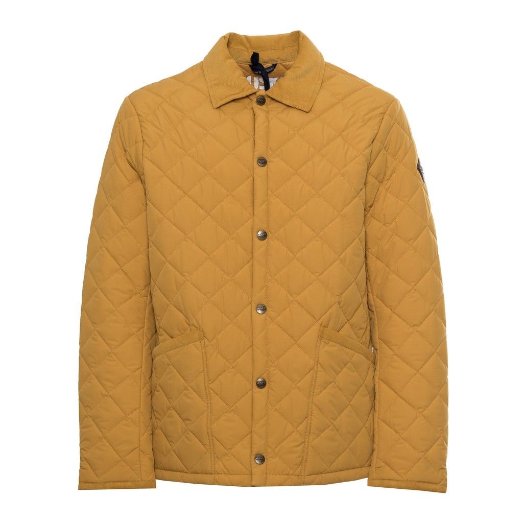 PADDED JACKET, FOR MEN, QUILTED, VELVET INSERTS, PRESS STUDS CLOSURE, WITH LOGO