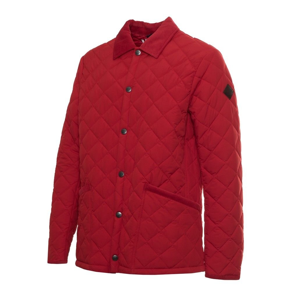 PADDED JACKET, FOR MEN, QUILTED, VELVET INSERTS, PRESS STUDS CLOSURE, WITH LOGO
