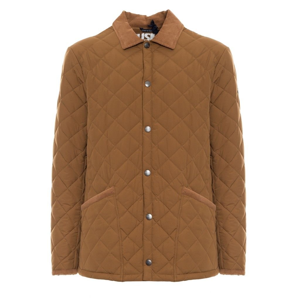 PADDED JACKET, FOR MEN, QUILTED, VELVET INSERTS, PRESS STUDS CLOSURE, WITH LOGO