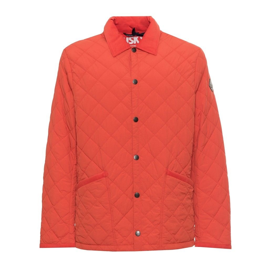 PADDED JACKET, FOR MEN, QUILTED, VELVET INSERTS, PRESS STUDS CLOSURE, WITH LOGO